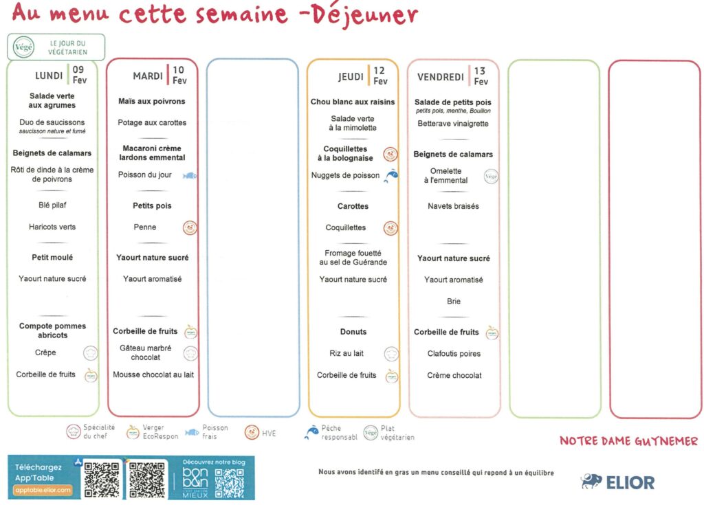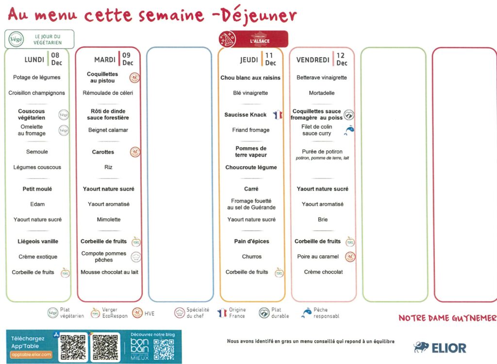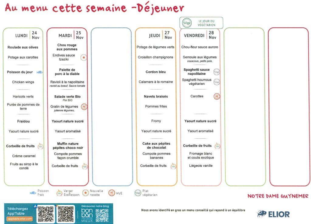 Demi-pension dans toutes les classes, self à partir du CP.